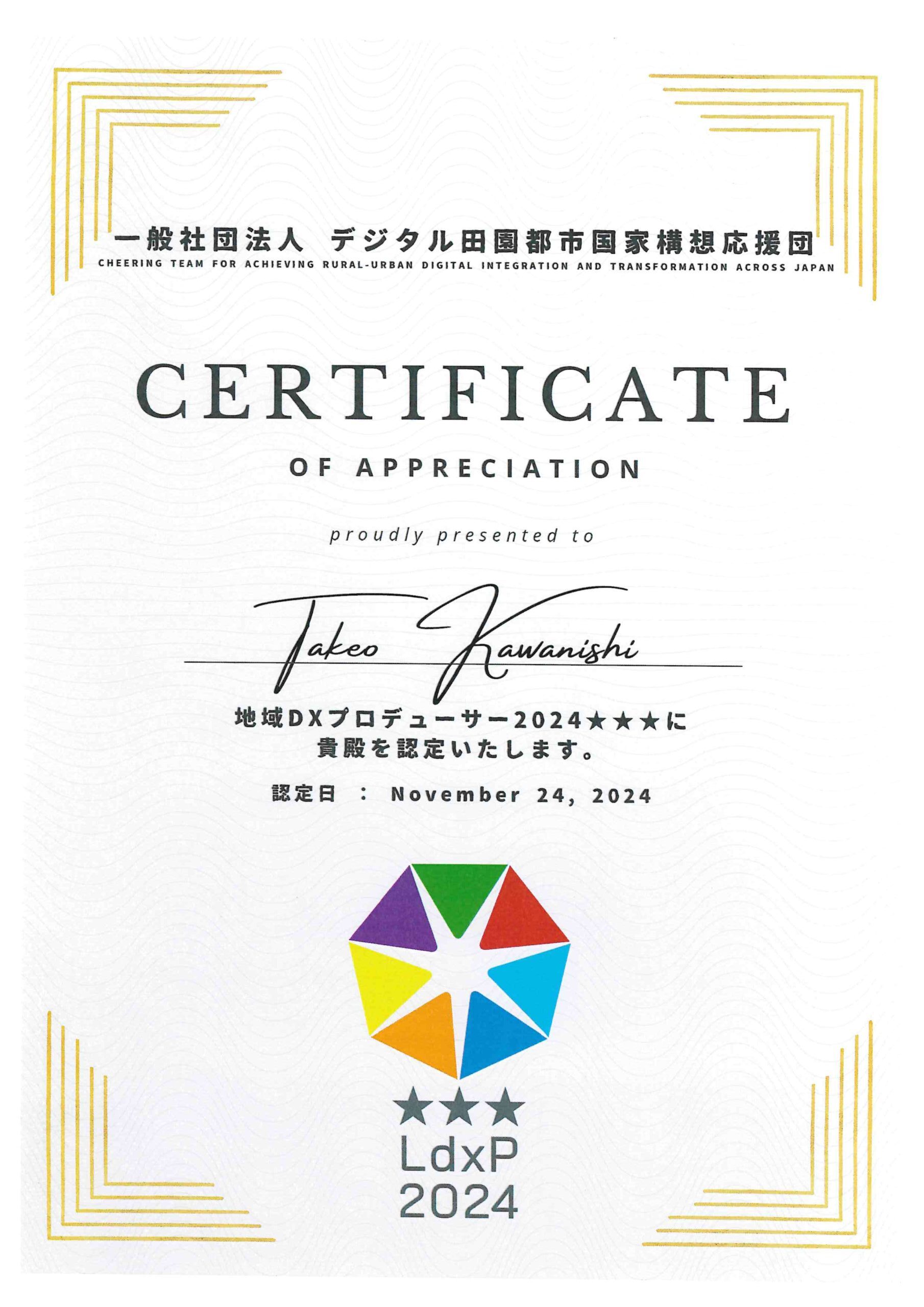 - デジタル田園都市国家構想応援団(通称:デジ田応援団)が認定する、