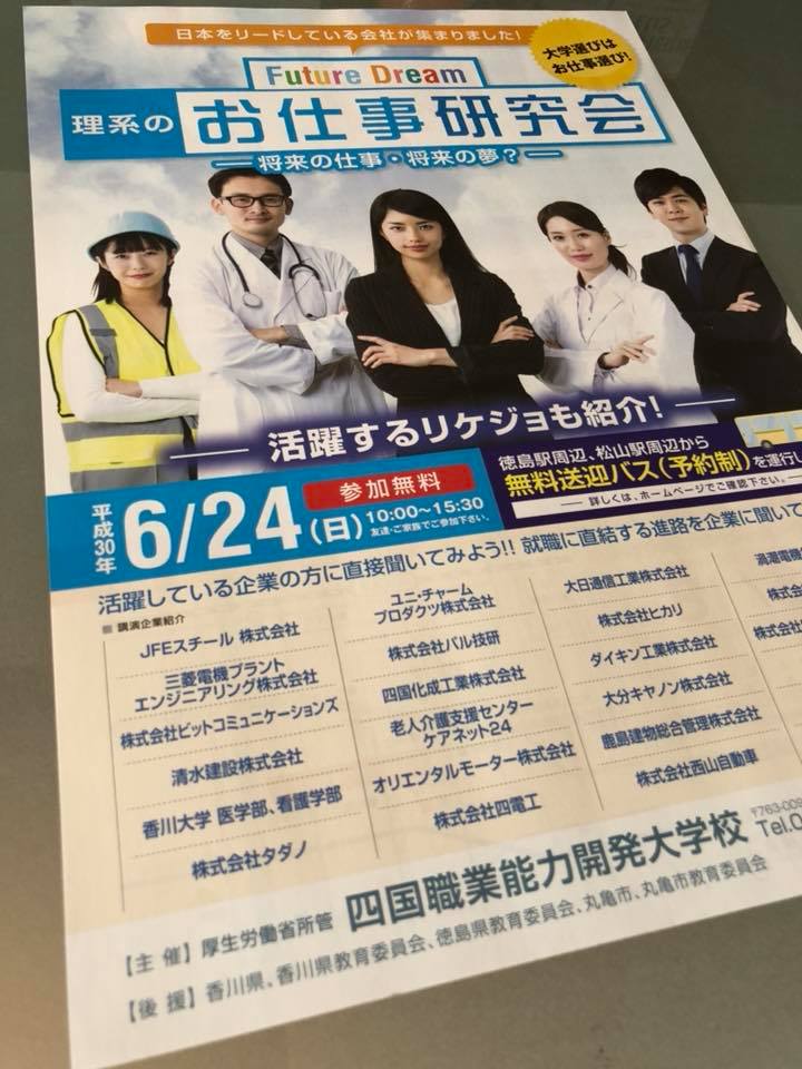 四国職業能力開発大学校でお話をさせていただきます イベント・セミナー 2018.05.21 四国職業能力開発大学校でお話をさせていただきます。 「理系のお仕事研究会」 若い人たちの前で話をするのは刺激がもらえます。 少しでも理系の人が地元で就職をしてくれればありがたいですね